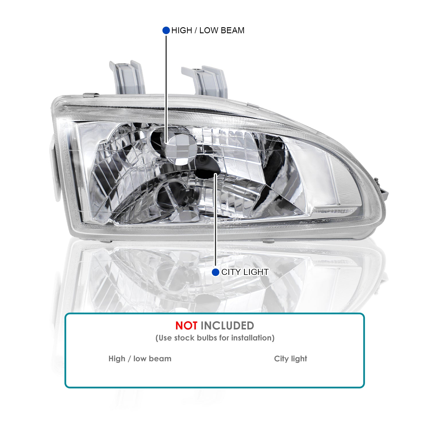 Coolstuffguru Compatible with Honda Civic Ex Dx Lx Chrome Clear Headlights
