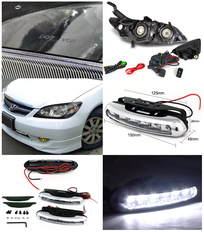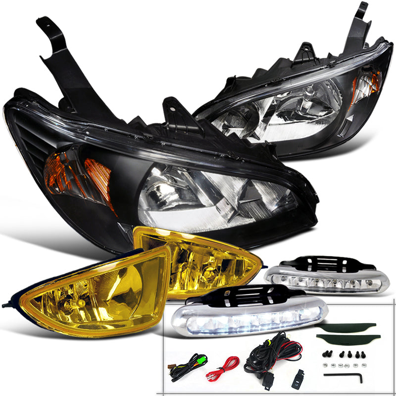 Coolstuffguru Compatible with Honda Civic JDM Black Headlight+Yellow Fog Lamp+Bumper Light LED DRL 6000K