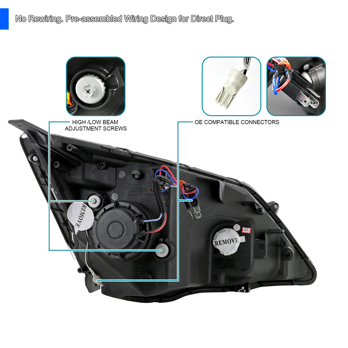 Additional Information: H1 light bulbs included for HIGH/LOW beam.