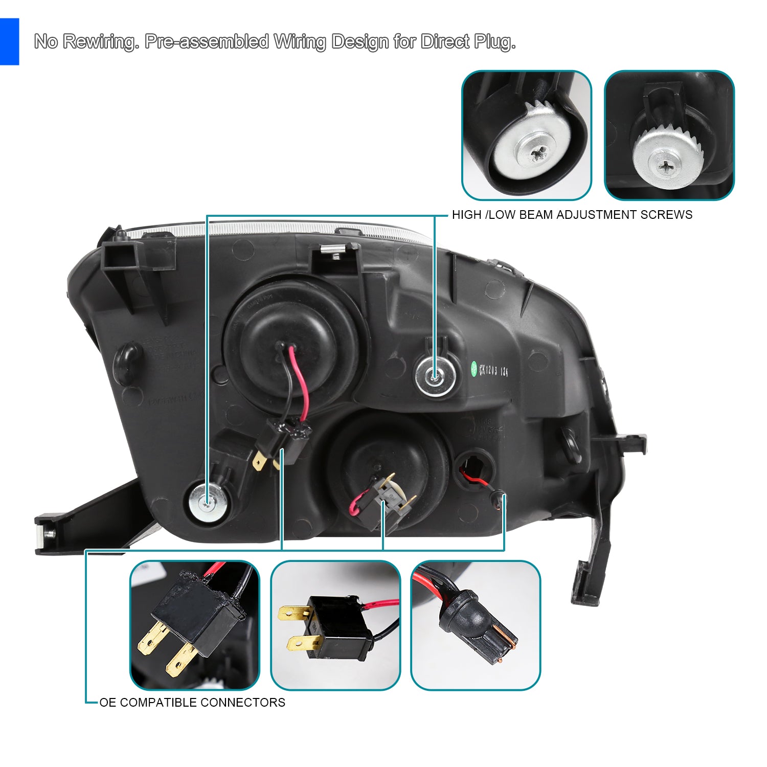 Coolstuffguru Compatible with Honda Prelude Black Clear SMD LED Projector Headlights Replacement