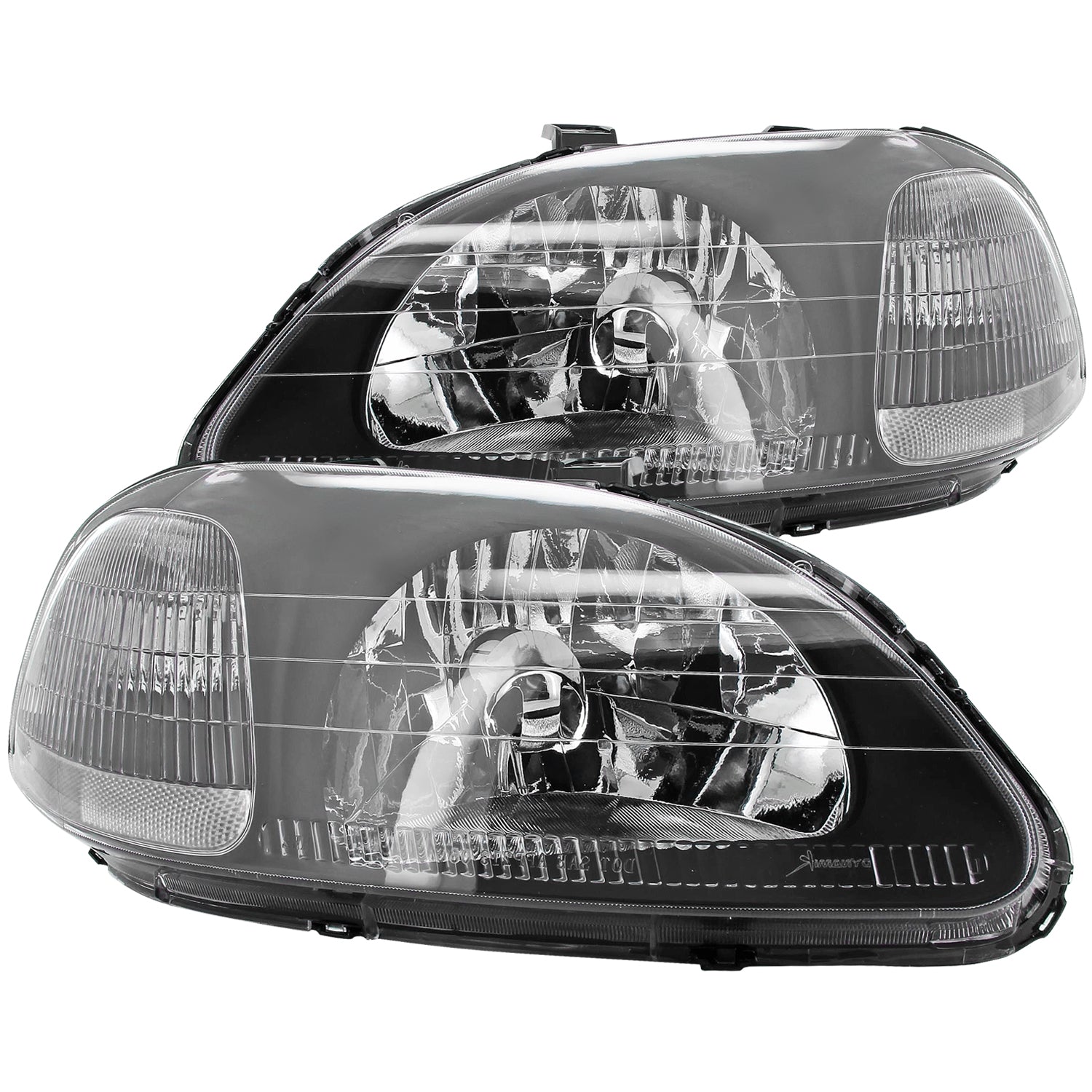 Coolstuffguru Compatible with/Replacement for 1996-1998 Honda Civic 2/3/4 Dr Black Headlights Front Head Lights Lamps Left+Right