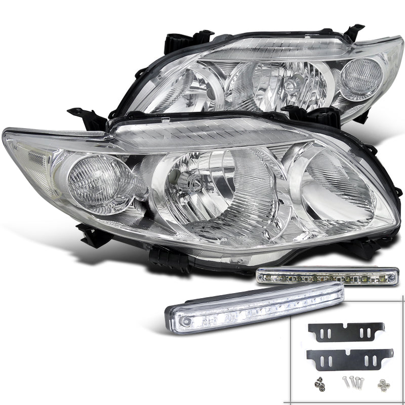 Coolstuffguru Compatible with Toyota Corolla Crystal Chrome Headlight+White LED Front DRL Fog Light