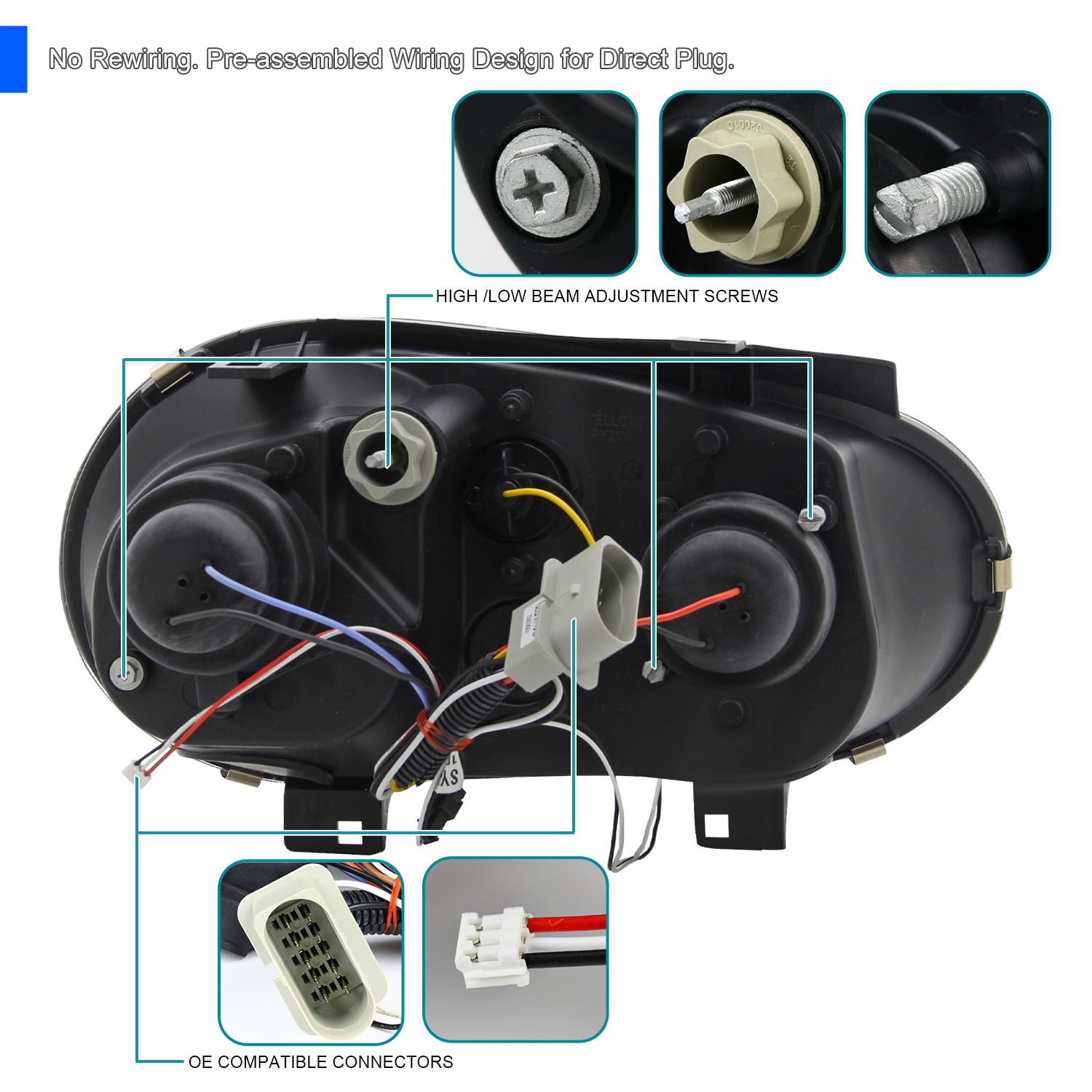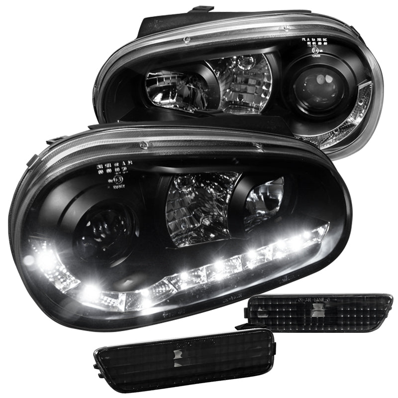Coolstuffguru Compatible with VW Golf GTI Black LED DRL Projector Headlights+Bumper Side Markers
