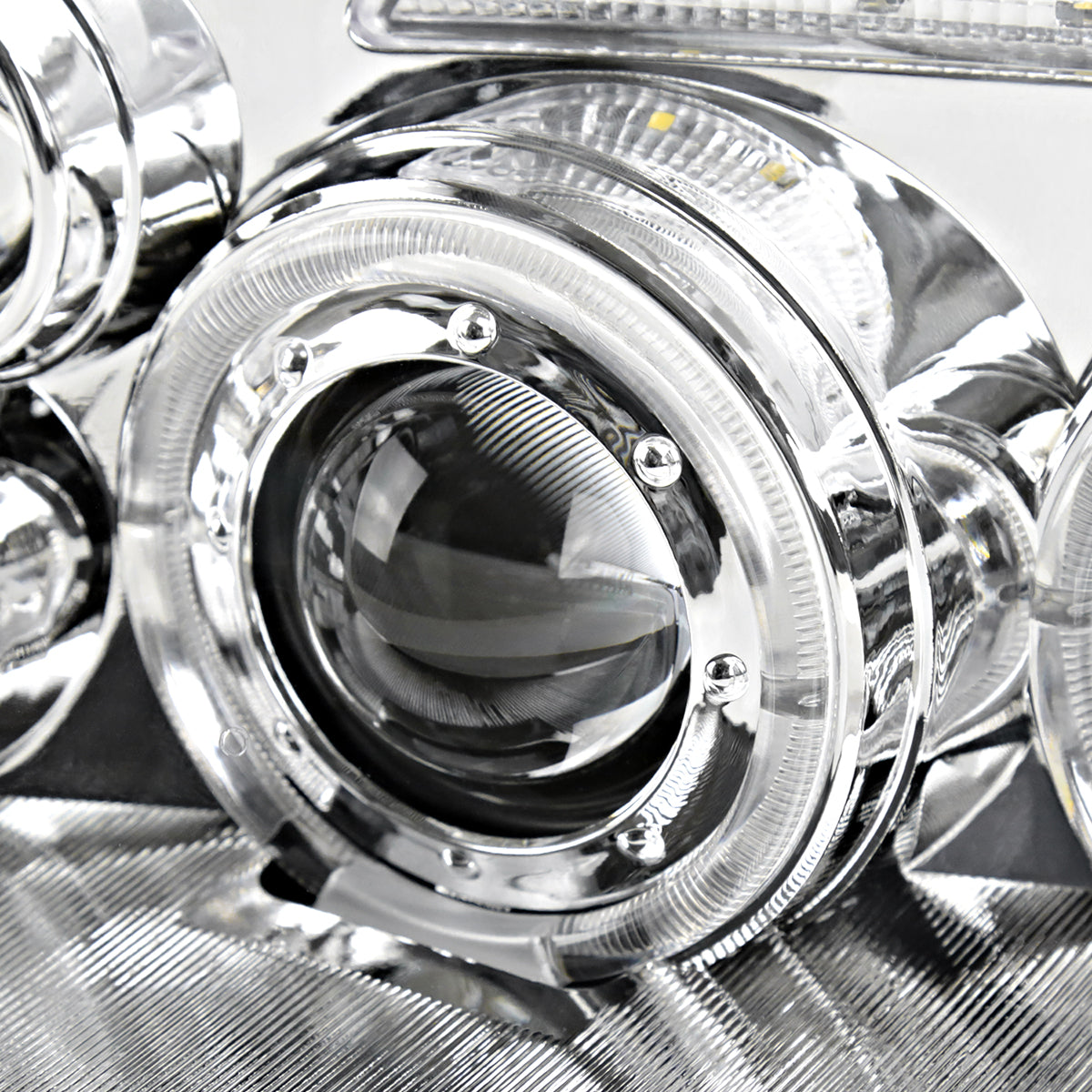Coolstuffguru Compatible with VW Jetta Chrome Halo LED DRL Projector Headlights+Black Mesh Hood Grill