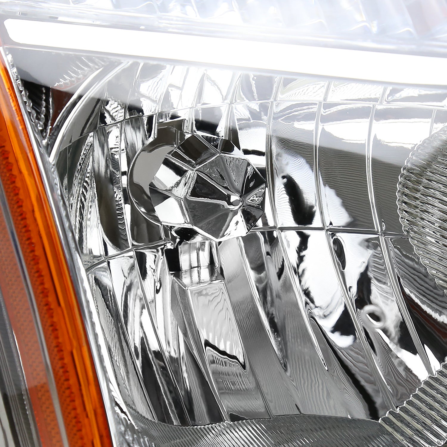 Description: Comes with a right/passenger side headlight assembly. Headlight is chrome housing with clear lens. Made by an ISO certified manufacturer with stringent quality control standards. Installation instructions not included. Professional installation is recommended.
