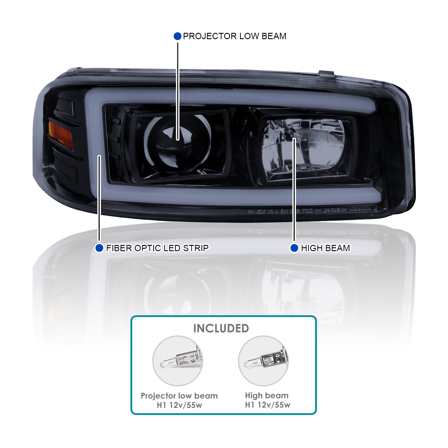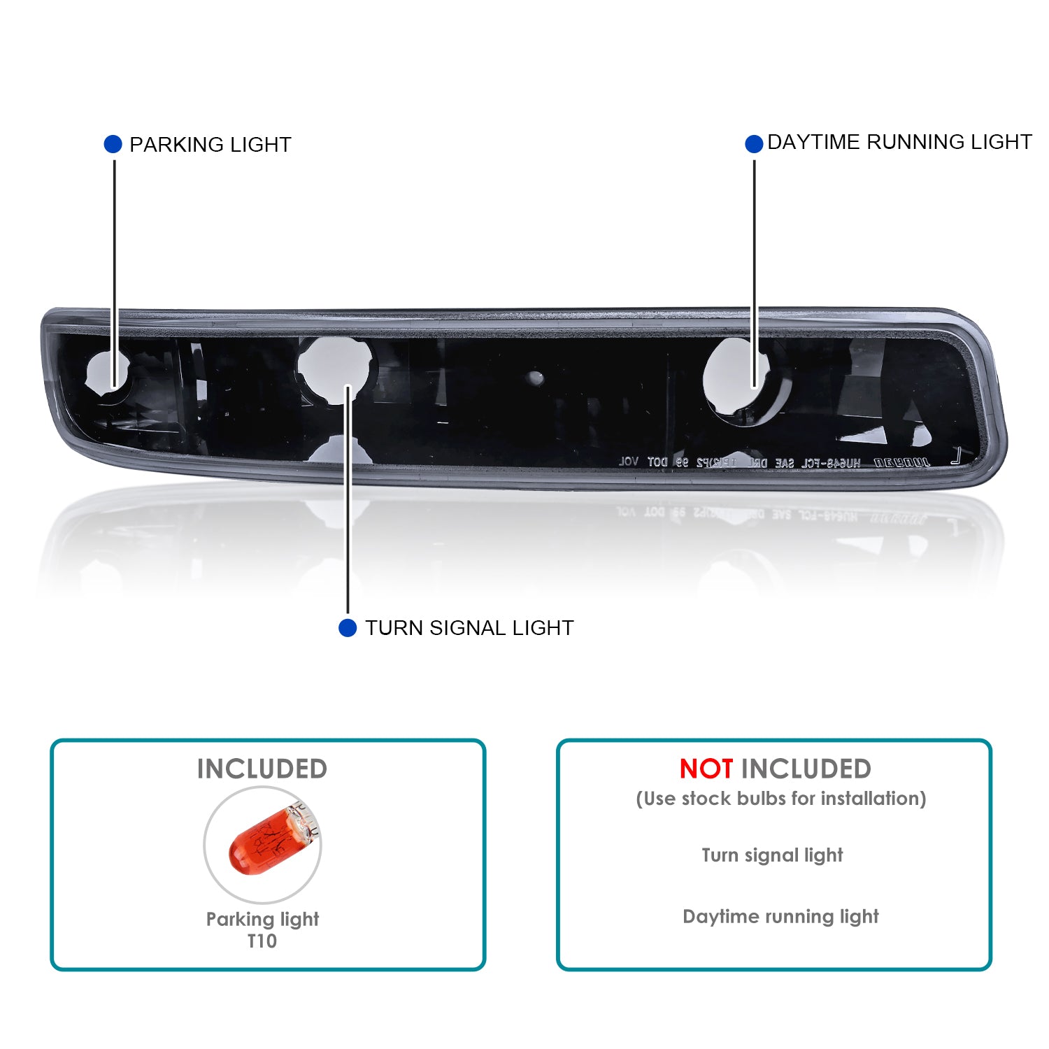 The item is 100% brand new in original box. Comes with 1 pair of glossy black housing smoke lens projector head lights with bright white LED light tube & 1 pair of glossy black housing smoke lens front bumper lights. Projector headlights: H1 12V/55W hi beam / low beam bulbs are included. Projector headlights focus light on the road to give better illumination. Bumper lights: Bulbs are not included. Please apply stock bulbs for installation. Professional installation is recommended.