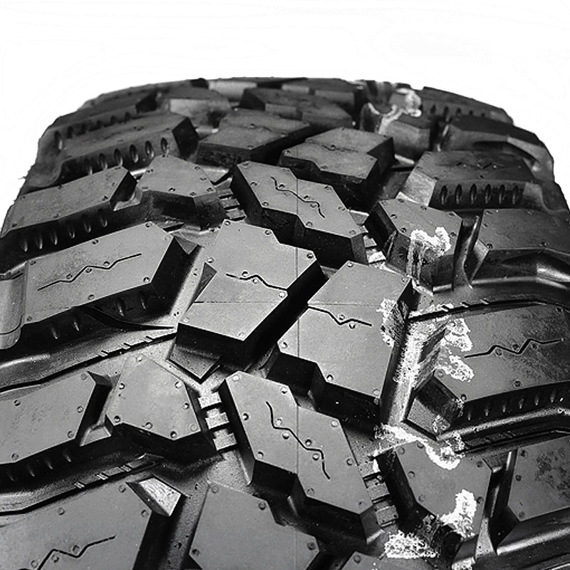 The Cooper Discoverer STT Pro is an off road all season tire made for light truck vehicles. This tire is capable of handling all loose, soft or uneven road surfaces thanks to its specially designed tread pattern. The tread pattern features alternating shoulder lugs that enhance the mud and soft surface traction and mud release dimples that keep the tread clean for maintained traction. The self-cleaning tread design improves the mud, gravel, dirt and rock traction. The same tread also features anti-stone retention, raised rubber ribs and angled groove walls that eject stones and gravel from the tread. These features allow the tire to conquer all difficult off-road conditions. The tire is perfect for drivers looking for versatility, as it performs excellently both on- and off-road. It has great off-road traction, while offering a comfortable drive on road.