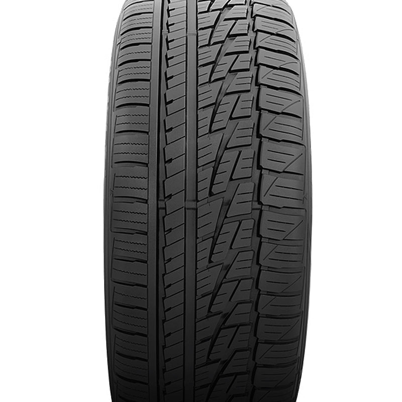 The Falken Ziex ZE950 A/S is a performance and high performance, depending on the speed rating of the specific tire size, tire made for passenger, SUV and crossover vehicles. The manufacturer offers a 45,000 mile tread wear warranty with W speed rated sizes and a 65,000 mile warranty with the H and T speed rated sizes of this tire model. The tire offers excellent all weather traction. Thanks to the Dynamic Range Technology (DRT) with the silica-based tread compound that is exclusive to Falken, the tire grips the road remarkably well in all weather conditions, including in winter. The winter traction of the tire is further enhanced with the 3D canyon sipes in the tread pattern. This design provides extra biting edges during braking in snow or on ice, improving the safety of the drive. The tread design's wide angled tread slots allow for snow to be packed into the middle of the tread pattern boosting the snow traction. The circumferential grooves on the tire pattern channel water from the footprint and increase the tire's hydroplaning resistance. This versatile weather traction enhances its drive quality as well. The tire's superb all weather traction provides additional biting edges, which means better and more powerful cornering and maneuvering performance. The 3D Canyon Sipe technology and the tread design's large shoulder blocks have a firm grip on the road when cornering, offering a safer driving experience. The Ziex ZE950 A/S offers a longer lasting tread life. The tread wears out evenly as irregular wear is prevented with the 3D Canyon Sipes in the tread pattern. The even wear on the tire extends the tire's usability and, this way, its life.