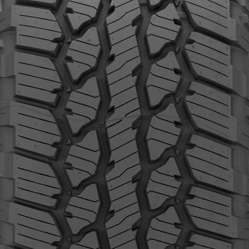 The Firestone Destination A/T is an all terrain all season tire manufactured for sport utility and light truck vehicles. Firestone offers a 50,000 mile treadwear warranty with this model. The tire has first-rate all season traction. The tread pattern and the tire compound firmly grip the road surface in all weather and promote exceptional dry, wet and winter weather traction. The tread design cleans out mud and snow from between the tread elements and prevents hydroplaning by dispersing water from below the tire footprint. The better water evacuation, maintained clean footprint and excellent traction ensure a safer year round driving experience.
