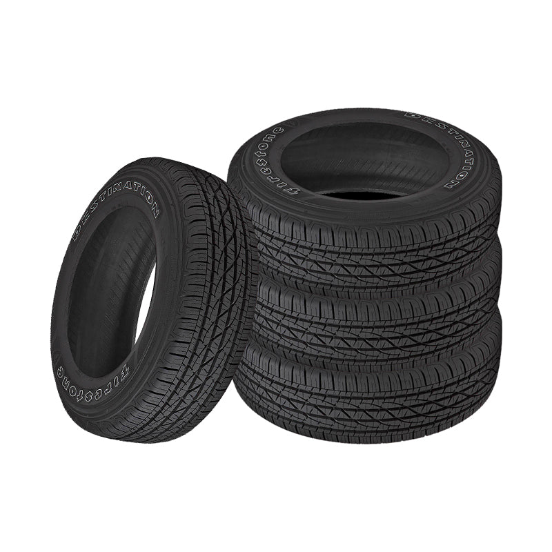 The Firestone Destination LE2 is a highway terrain, all season tire made for crossover vehicles, SUVs light trucks. This model has some touring passenger vehicles sizes as well. Firestone offers a 60,000 mile treadwear warranty. The detailed tread pattern promotes excellent all weather traction. The continuous closed shoulder tread block design improves the dry performance. The circumferential grooves, zigzag siping detail and the sweeping grooves prevent hydroplaning and boost the wet weather traction by eliminating water from below the tire footprint. The stepped inside notches and the zigzag sipes find good grip on snow and ice-covered road surfaces. The enhanced road gripping ability ensures a safer year round driving experience.