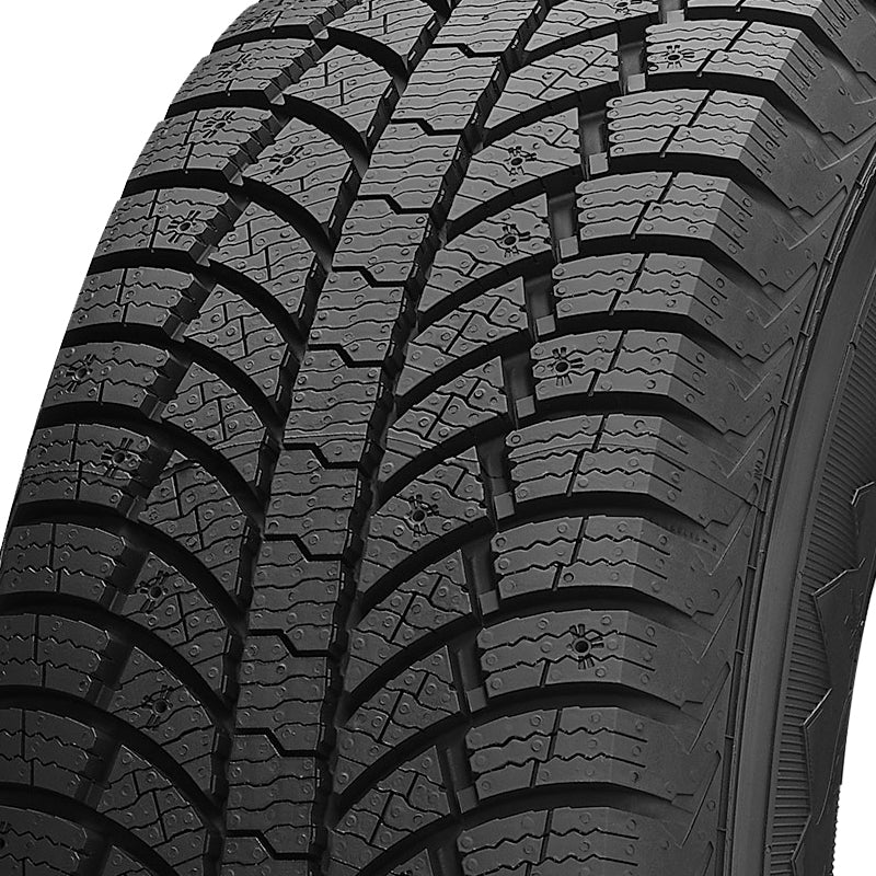 The General Grabber Arctic is a studdable touring winter tire manufactured for SUVs. The tire offers great winter weather traction. The tire combines its detailed directional tread pattern and cold temperature compound to increase the winter road gripping ability. The directional tread design features a high-density wavy sipe detail that provides additional biting edges to upgrade the ice and snow traction. The compound maintains the tire's rubber flexibility in colder temperatures to improve the winter weather performance. The model is pinned for studs, which can be added to heighten the tire's gripping ability while driving on ice- and snow-covered road surfaces. The tread's circumferential and angled lateral grooves avoid hydroplaning. They disperse water and slush from below the tire's footprint, further improving the winter weather traction. The model is easily controlled. The continuous center rib of the directional tread design maintains the tire's road contact at all times, which boosts the steering responsiveness and driving stability. This ensures a faster and more precise steering response to the driver's commands, while the structure is stabilized against the driving pressure affecting the model. The large shoulder tread blocks, with the optimal siping detail, enhance the cornering capability. They increase the number of biting edges gripping the road surface during maneuvering to ensure a safer cornering ability. The high-density siping detail creates friction at the moment of braking. This manages to shorten the braking distance and ensures a safer winter weather driving experience. The Grabber Arctic has great durability. The reinforced steel belt construction maintains the tire's optimal shape under the driving pressure. As the tire's shape does not deform under the driving pressure, the tire is capable of safely performing to its utmost capability at all times.