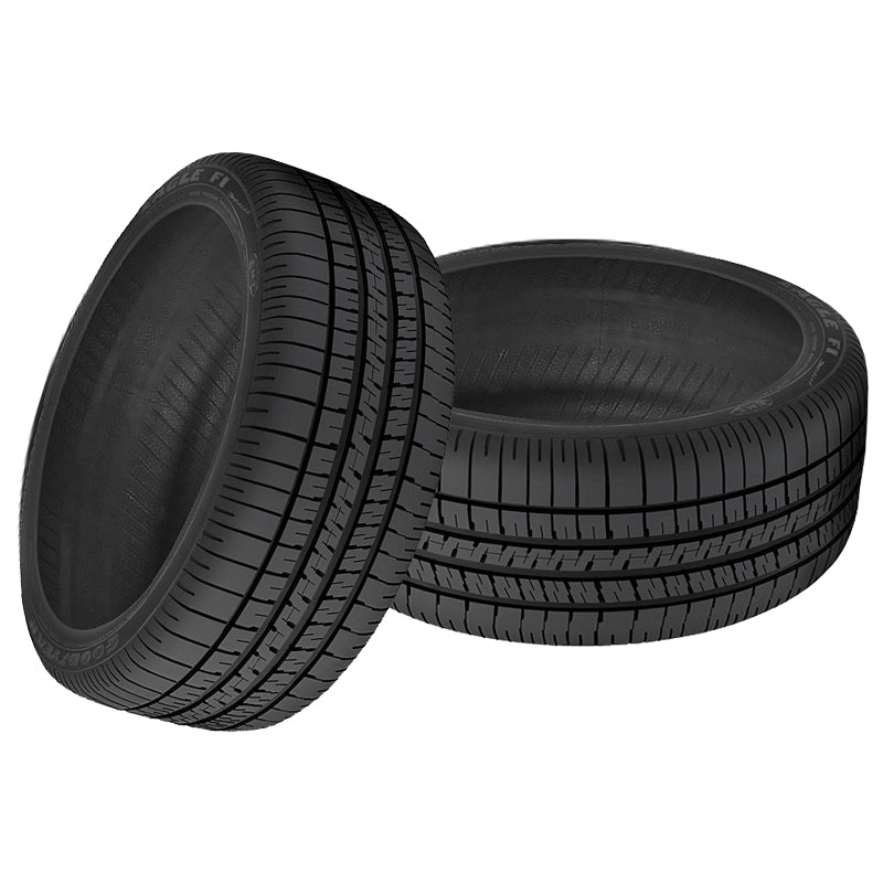 The Goodyear Eagle F1 Supercar is a high performance summer tire manufactured for passenger vehicles. The tire offers great summer weather traction. The summer weather tire compound and the ribbed tread pattern design work together to increase the dry and wet weather road gripping ability. The compound maintains its flexibility in such conditions, and it actively resists heat build-up on the tread area. The ribbed tread design firmly grips the road surface to boost the high speed driving safety in these conditions. The circumferential grooves prevent hydroplaning by dispersing water from beneath the tire's footprint. The enhanced traction and hydroplaning resistance ensure a safer summer weather performance. The model was manufactured with a stronger internal structure. The reinforced twin steel belt construction upgrades the tire's high speed durability. It maintains the tire's optimal shape under the high speed driving pressure affecting the model. It actively prevents the deformation the tire's shape and improves its high speed performing capability. The stronger construction combined with the compound's prevention of heat build-up during the drive, enables the tire to securely perform to its best high speed ability. The Eagle F1 Supercar is easily controlled. The race-inspired ribbed tread design maintains the tire's road contact at all times, which effectively upgrades its steering responsiveness and driving stability. The steering becomes faster and more precise in its responsiveness to the driver's instructions, while the structure is stabilized against the driving pressure affecting the model. The larger outer shoulder tread blocks increase the cornering and maneuvering ability with the tire's extra biting edges. The biting edges consistently grip the road surface during cornering to guarantee better control over the vehicle in such situations.