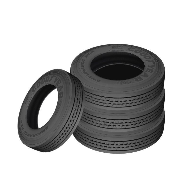 The Goodyear Endurance RSA is a highway terrain, all season tire manufactured for commercial vehicles. It can be mounted on all axle positions. The tire offers great all weather traction. The tread design and the all season tire compound work together to increase the dry, wet and winter weather road gripping ability. The compound keeps its flexible traction throughout the year. The tread design's optimal siping detail increase the year round road grip with its additional biting edges, which ensures a secure performing capability. The tread's wide circumferential grooves avoid hydroplaning by dispersing water and slush from below the tire's footprint. The better hydroplaning resistance and excellent all weather performance improves the year round driving safety. The durable tire compound and the special optimal road contact enhance the tread life. The compound significantly slows the tread wear rate down, while the tread design manages to evenly distribute the driving pressure along the tread area. The equally spread out forces of acceleration, cornering and braking avoids irregular wear formations across the tread area. The slower and longer lasting even tread wear significantly lengthens the tread life and with it the tire's usability and service life. The Endurance RSA is a fuel efficient tire. The tread design and all season compound's increased traction manage to lower the tire's rolling resistance. The rolling resistance is the pressure affecting the tire which determines the amount of energy the vehicle needs to maintain the tire's motion. The reduced rolling resistance decreases the vehicle's fuel consumption and CO2 emissions, offering a fuel conscious and environmentally friendly performing capability.
