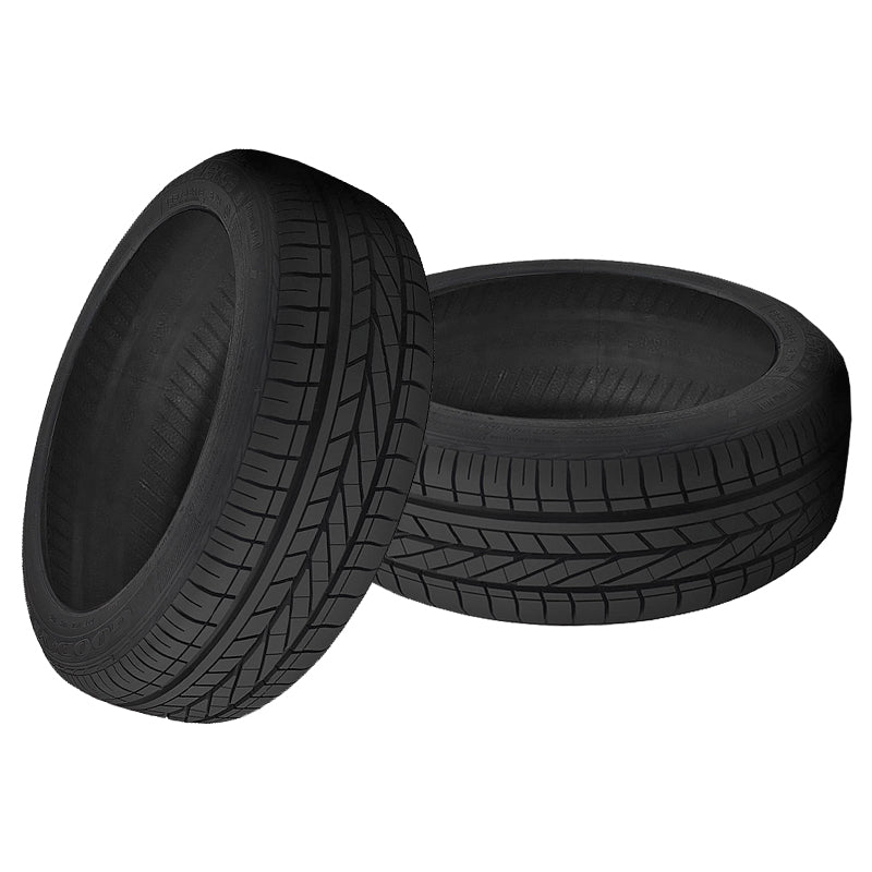 The Goodyear Excellence is a high performance summer tire manufactured for passenger vehicles. The special tread pattern and the polymer tire compound work together to increase the dry and wet weather road gripping ability. This excellent summer weather traction guarantees a safer driving experience in all hot temperature conditions and allows the driver to confidently control the vehicle. The wide circumferential and lateral grooves actively resist hydroplaning situations by eliminating water from below the tire footprint. This model, however, is not capable of handling winter weather, as the tire compound does not maintain its flexibility and traction in colder temperatures. The tire promotes a longer lasting tread life. The unique asymmetric tread pattern increases the tread life and tire usability by preventing irregular wear patterns from forming across the tread area. This is achieved as the tread design equally distributes the forces of acceleration, braking and cornering across the tread area, which prevents the driving pressure from concentrating on one area of the tread. The even distribution of the driving pressure and the asymmetric tread's variable pitch design also lower the road noise heard in the vehicle's cabin. While the tires are in motion, the tread design creates a sound frequency that negates the road noise generated. This guarantees a quiet and increased performing ability. The Excellence's tread design features a continuous rib and shoulder tread block sequences that enhance the model's controllability. The maintained road contact increases the steering responsiveness and driving stability, which boosts the model's handling. The steering becomes more precise and its response time quicker, while the tire is secured against the driving pressure affecting it. The shoulder tread block sequence also increases the cornering ability and power greatly by providing additional biting edges in maneuvering situations. The polymer tire compound improves the model's braking with its superb traction even in wet weather. The better road grip enables the tire to shorten its braking distance and offer safer driving experience.