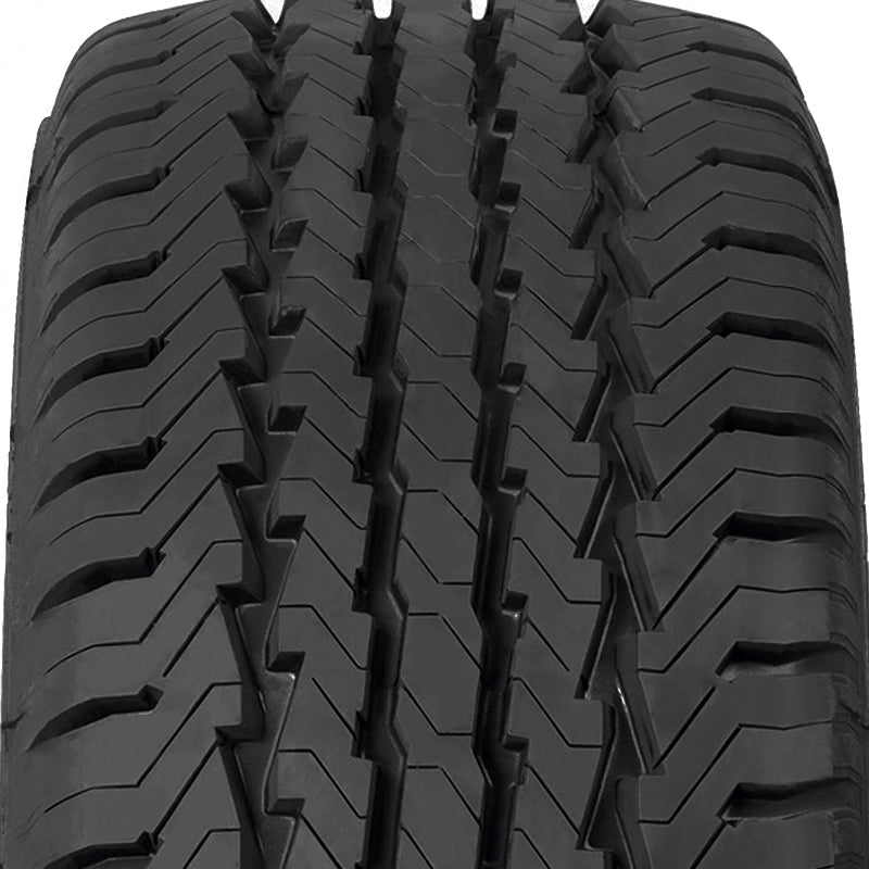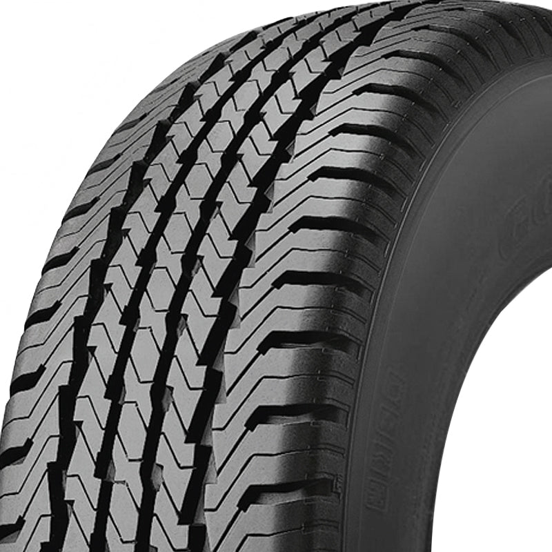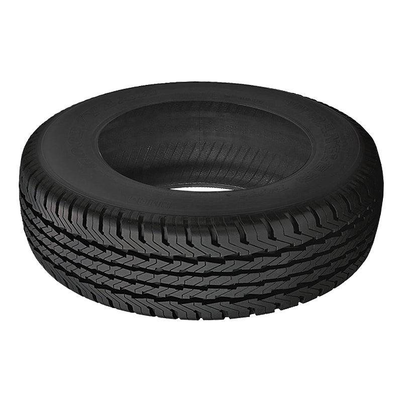 The Goodyear Wrangler HT is a highway terrain, all season tire manufactured for SUVs and light trucks. The tire offers great all weather traction. The special all season tire compound and the ribbed symmetric tread design enhances the dry, wet and winter weather road gripping ability. The tread design's optimal siping detail firmly grips even the ice- and snow-covered road surfaces, while the all season tire compound keeps its flexible traction throughout the year. The tread's zigzag circumferential grooves prevent hydroplaning by dispersing water and slush from the tire's footprint. In this manner, the tire ensures a secure year round performing capability. The model's ribbed tread design closely follows the road surface. The better road contact increases the steering responsiveness and the driving stability. In other words, the steering becomes faster and more precise in its response to the driver's instructions, while the structure is stabilized against the driving pressure affecting the model. The model's internal steel belt structure is reinforced to withstand the driving and load pressure. It keeps the tire's optimal shape during the drive and improves the load carrying and withstanding ability. The flat footprint's constant road contact manages to lengthen the tread life. It enables the tire to evenly distribute the driving pressure along the tread area. The equally distributed forces of acceleration, cornering and braking avoid the formation of irregular tread wear, which lengthens the tread life and the tire's usability significantly. The Wrangler HT also guarantees a comfortable performance. The solid center rib's close road contact improves the comfort levels by absorbing the shock of driving. This decreases the road vibrations felt in the vehicle's cabin while the tires are in motion. As the road vibrations and road disturbances are not felt by the passengers of the vehicle, it ensures an enjoyable driving experience.