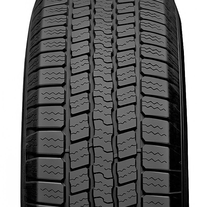 The Goodyear Wrangler SR-A is a highway terrain all season tire manufactured for SUV, crossover and light truck vehicles. This tire has remarkable all weather traction, which grips the road well even in lower temperatures and light winter weather. The tire's zigzag grooves grip the road firmly while the special tire compound offers added traction and biting edges for wet road surfaces. The circumferential grooves in the tread pattern help eliminate water from below the footprint, actively resisting hydroplaning. Using the tire all year becomes safer this way. The tire's tread lock sipes, in other words the TredLock microgrooves, provide additional biting edges. The extra biting edges enhance the wet traction of the model and improve the cornering ability and power. The boosted cornering ability allows for more confident maneuvering with this model. The Wrangler SR-A's internal structure offers extra stability for high speed driving. This prevents the driving pressure from deforming the tire and it maintains its shape at all speeds. Some sizes of this model have reinforced sidewalls, which are capable of handling heavy loads. Those are the load range D and E models, which are meant to be used on light trucks.