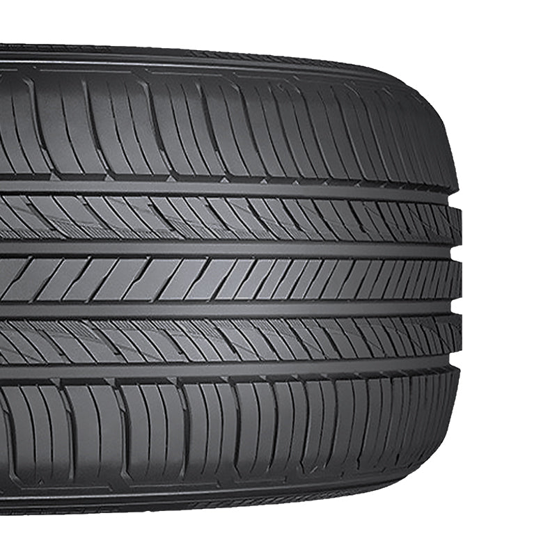 The Kumho Crugen HP71 is a touring, all season tire manufactured for passenger and crossover vehicles and SUVs. Kumho offers a 65,000 mile treadwear warranty with this model. The tire guarantees excellent all weather traction. The symmetric tread pattern with the full depth siping pattern and the independent tread blocks upgrade the dry, wet and winter weather road gripping ability. The better grip on the road surface upgrades the year round driving safety as it doesn't allow the tire to lose its traction in various conditions. The optimized tread block placement enhances the hydroplaning prevention. The grooves and siping pattern disperse water and slush from beneath the tire's footprint, ensuring a secure wet and winter weather road gripping capability. The model promotes high levels of driving comfort. It combines its tread design and internal structure to heighten the driving comfort levels. The structure's optimized shape and its ability to closely follow the road surface at all times enables the tire to absorb the shock of driving throughout the tire's performance. The better road contact, in this manner, decreases the road vibrations felt in the vehicle's cabin. The variable pitch phase shift of the ribbed tread design manages to lower the road noise levels. They create a sound frequency that negates the road and tread pattern at the moment they are generated. As a result, the road noise does not reach the vehicle's cabin and does not ruin the driving enjoyment of the passengers. This provides a quiet and comfortable driving experience. The tire is easily handled thanks to its optimal tread design. The stronger center rib and the optimal shoulder pattern keep the tire's road contact to improve the controllability and the maneuvering capability. The better road contact of the center rib increases the steering responsiveness and the driving stability. This improves the steering response time and accuracy to the driver's commands, while it stabilizes the structure against the driving pressure affecting the model. The shoulder blocks heighten the number of biting edges gripping the road surface, enhancing the cornering and maneuvering capability. The first-rate handling ensures a safer all weather performance. The Crugen HP71 offers a lengthened tread life. The tread design improves the tread life and the tire's usability. The stronger tread elements are stabilized during the tire's performance, which actively prevents tread flexing. As a result, the tire is able to evenly distribute the driving pressure along the tread area. The equally circulated forces of acceleration, cornering and braking avoid uneven tread wear formations on the tire surface. In this manner, the tire extends its usability and tread life significantly.