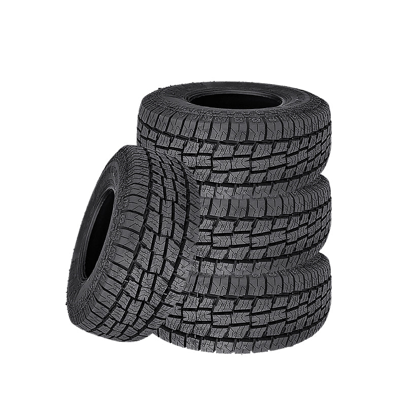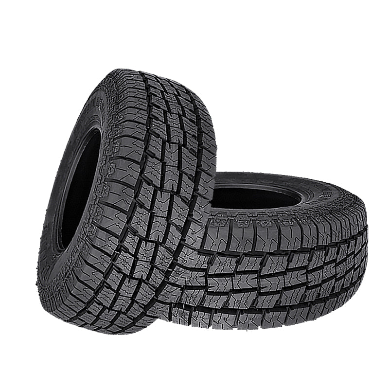The Lionhart Lionclaw ATX2 is an all terrain, all season tire manufactured for SUVs and light trucks. The tire offers exceptional all weather traction. The symmetric ribbed pattern and the all season tire compound boost the dry, wet and winter weather road gripping ability. The tread elements find firm grip in all weather, while the compound maintains its flexibility even in colder temperatures to ensure a safer performance. The wide circumferential grooves and open shoulder design prevents hydroplaning by eliminating water and slush from below the tire's footprint. The better hydroplaning resistance and excellent all weather traction ensures a safer year round driving experience. The model guarantees a secure off-road performance as well. The staggered tread blocks, open shoulder design, sidewall pattern and extra siping detail upgrade the soft, loose and uneven terrain traction greatly. In this manner, the model has superb on and off-road performance, as its tread elements find firm grip on all road and terrain surface conditions. The staggered tread blocks also maintain a clean footprint by cleaning out mud and snow and ejecting rocks stuck between the tread elements. The constantly clean footprint keeps the tire's road contact at all times, while also preventing stone retention from harming the tire's casing. As a result, the tire promotes a safer all terrain performance. The tread design improves the tire's controllability. The center tread block placement increases the tire's constant road contact to improve the steering responsiveness and driving stability, while the shoulder tread blocks boost the cornering ability and power. The maintained road contact upgrades the steering response time and accuracy to the driver's commands, while the structure is stabilized against the driving pressure affecting the tires, while they are in motion. The shoulder tread blocks, with the detailed siping design, increases the number of biting edges that firmly grip the road surface during cornering and maneuvering to ensure a secure performance. The Lionclaw ATX2 offers a longer lasting tread life. The optimized tire footprint manages to equally spread out the forces of acceleration, cornering and braking across the entire tread area. The evenly distributed driving pressure avoids the possibility of uneven wear formations across the entire tread area, lengthening the tread life and the tire's usability
