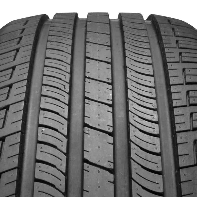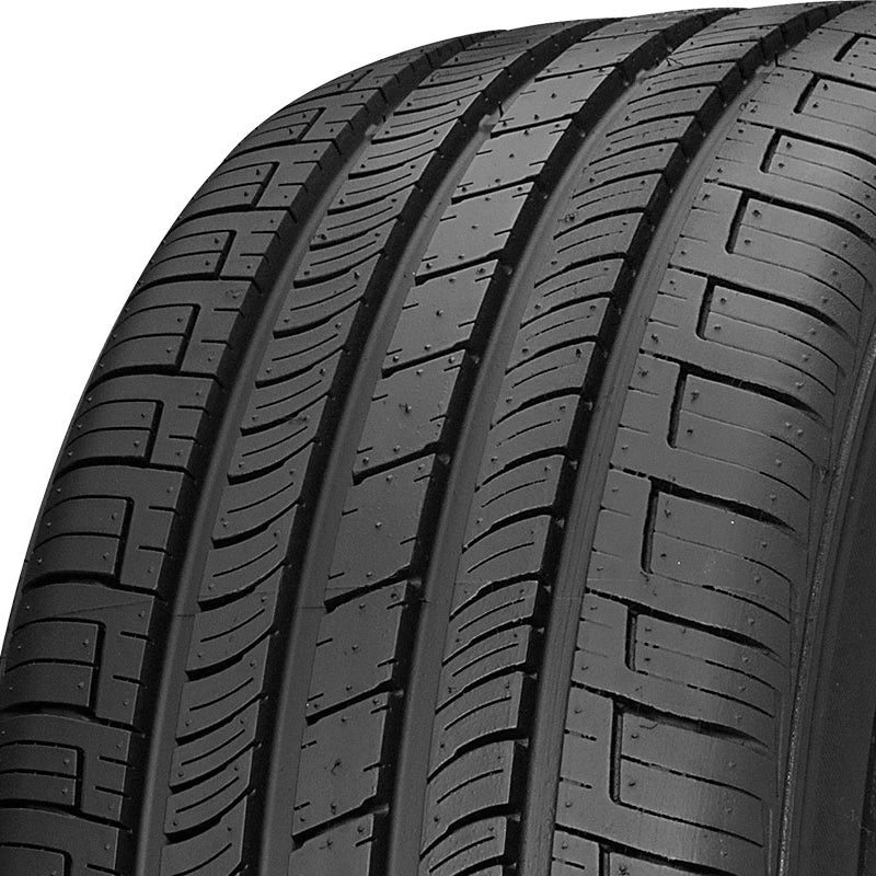 The Nexen Classe Premiere CP662 is a touring all season tire manufactured for passenger vehicles. The tire promotes great all weather traction. The tread pattern and the all season compound boost the dry, wet and winter weather road gripping ability. The tread pattern manages to maintain a firm grip on the road surface in all weather, while the special compound keeps its flexibility in winter weather as well. The wide circumferential and rapid angle grooves disperse water and slush from the tire's footprint to prevent hydroplaning in wet conditions. The combination of the enhanced road grip and hydroplaning resistance increase the year round driving safety. The tread design and the internal structure ensure an enjoyable drive. The internal structure features a reinforced polyester casing that decreases the road vibration levels. They closely follow the road surface while the tires are in motion, preventing road vibrations from forming while the tires are in motion. The special rapid angle round grooves avoid road and tread pattern noise from being heard in the vehicle's cabin. The angled grooves channel the airwaves through the tire's footprint and without letting them come into contact with the tread elements. The result is a quiet and comfortable driving experience. The Classe Premiere CP662 maintains its road contact at all times. The tread design's continuous center block rib enhances the tire's road contact. The better road contact increases the steering responsiveness and driving stability, promoting a secure controllability in all weather. The large shoulder tread blocks increase the cornering ability and power as they increase the number of biting edges that firmly grip the road surface. The boosted maneuvering ability makes the tire easier to control even at high speeds.