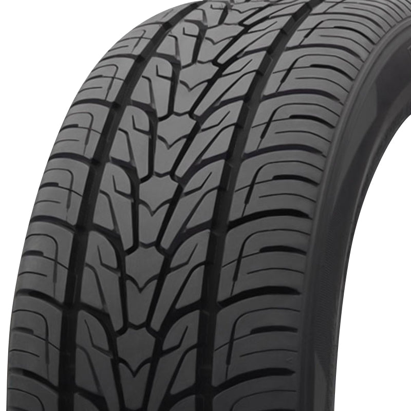 The Nexen Roadian HP is a performance all season tire manufactured for passenger and crossover vehicles and SUVs. Nexen offers a 40,000 mile warranty with this tire model. This model offers a longer lasting tread life. The tire's tread wear rate is slowed down as the footprint maintains constant contact with the road and evenly distributes the driving pressure along the tread area. The constant contact equally spreads the force of acceleration, cornering and braking out across the tire's surface and prevents irregular wear on the tire, extending its life. The special tread design enhances the cornering ability and the precision of the steering responsiveness. The tread blocks on the shoulder provides additional traction and grip during cornering. This stabilizes the tire's cornering ability, while also enhancing its cornering ability and power. The control over the tire is made easier as the arrow-type center rib design improves the steering responsiveness of this model. The accurate steering and the boosted cornering ability make the driving experience safer for the driver and passengers. The Roadian HP has remarkable dry, wet and winter weather traction. This is made possible with the tire compound and the tread design, both of which provide excellent road grip. The tread elements firmly grip the road surface, while the compound maintains the optimal flexibility. The specially designed tread pattern on the tire helps resist hydroplaning by dispersing water from below the footprint, making the driving experience safer.