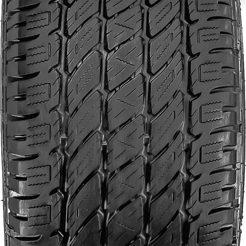 The Nitto Dura Grappler tire is a highway all-terrain tire that has long-wear life, a quiet and comfortable ride but with plenty of traction for the occasional off-road adventure. It has a heavy duty carcass for extra loads and commercial applications. It is commonly used on SUVs and pick up trucks that rarely go off-road. All the LT sizes have 10 ply sidewalls ("E" load range) with a durable tread rubber molded into a 4-rib design. The p-metric sizes for SUVs has a different rubber and a slightly quieter 5-rib tread design. With the Dura Grappler tire, like several other Nitto tires, you get two styling options with every tire thanks to the dual sidewall design - one side has plain side-lugs and the other side has attention grabbing "shark fin" shaped lugs.
