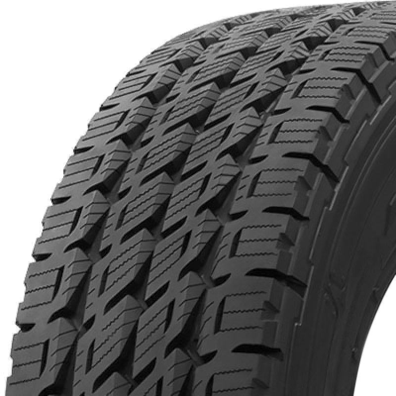 The Nitto Dura Grappler tire is a highway all-terrain tire that has long-wear life, a quiet and comfortable ride but with plenty of traction for the occasional off-road adventure. It has a heavy duty carcass for extra loads and commercial applications. It is commonly used on SUVs and pick up trucks that rarely go off-road. All the LT sizes have 10 ply sidewalls ("E" load range) with a durable tread rubber molded into a 4-rib design. The p-metric sizes for SUVs has a different rubber and a slightly quieter 5-rib tread design. With the Dura Grappler tire, like several other Nitto tires, you get two styling options with every tire thanks to the dual sidewall design - one side has plain side-lugs and the other side has attention grabbing "shark fin" shaped lugs.