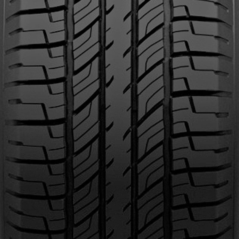 "The Uniroyal Laredo Cross Country Tour is a touring all season tire manufactured for sport utility, crossover and light truck vehicles. Uniroyal offers a 60,000 mile treadwear warranty with this model. The tire promotes excellent all weather traction. The tread pattern's open shoulder grooves increase the tire's all weather traction and promote first-rate road gripping ability. This tread design further enhances the wet and winter weather traction. The wide circumferential grooves prevent hydroplaning by eliminating water from below the tire footprint. The better hydroplaning resistance and the increased weather traction boost the all weather controllability and handling as well. The enhanced traction maintains constant road contact which guarantees a better steering responsiveness and driving control. The tread design and the internal structure boost the tire's tread life and usability. The Dura Shield construction maintains the tire's optimized shape under all weather and road conditions. As the tire does not deform under the driving pressure, it prevents the driving pressure from concentrating on one area of the tread. This, along with the solid shoulder tread blocks, prevents irregular tread wear as they evenly distribute the driving pressure along the tread area. The tread design's full-depth sipes also increase the tread life as they do not wear out with the tread wear. Instead they provide traction and road grip throughout the tire's tread life. The model has excellent durability. The Dura Shield construction improves its performance on tougher terrain. It strengthens the tire's construction and avoids deformation during the drive. As the tire maintains its optimal tire shape, it is capable of performing well both on and off-road. The off-road traction is further enhanced with the tread pattern's open shoulder design. It firmly grips the road surface in all weather and road conditions and allows the model to perform to its utmost capability in all driving conditions. The Laredo Cross Country Tour promotes a quiet and comfortable driving experience. The tread design's computer optimized pitch negates the road pattern noise heard while the tires are in motion. They create a soundwave that cancels the road noise heard in the vehicle's cabin. The lowered road noise levels ensure an enjoyable drive in all weather."